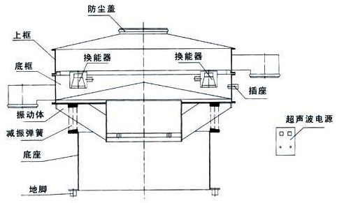 超聲波振動篩,由立式振動電機(jī)軸的上下兩端的偏心重錘產(chǎn)生振動源,使超聲波振動篩參振的上部在水平、垂直、傾斜方向做三次元運(yùn)動,調(diào)節(jié)上、下部重錘的相位角,可改變物料在篩面上各種不同的運(yùn)動軌跡,來滿足各種不同比重物料的很好篩分或過濾,增減上、下部重錘附加重塊的數(shù)量,會產(chǎn)生不同的振動力,可以達(dá)到不同比重、不同目數(shù)(或孔徑)物料的很好篩分、過濾效果。